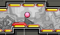 Sensor Fields are pink areas generated by machines. When an object enters the field, metal gates open elsewhere. When the object exits the field, the gates close. In order to get through, Kirby must take advantage of ball bearings and/or Shockcreepas entering the field.