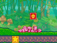 Point Star Blocks are rare red and white blocks adorned with gold medallions. When hit by a Tap Dash or Star Dash, it spews a hoard of Point Stars for Kirby to collect.