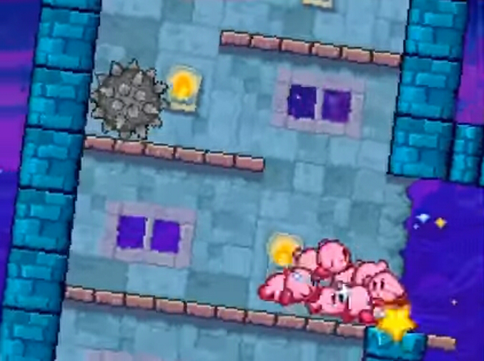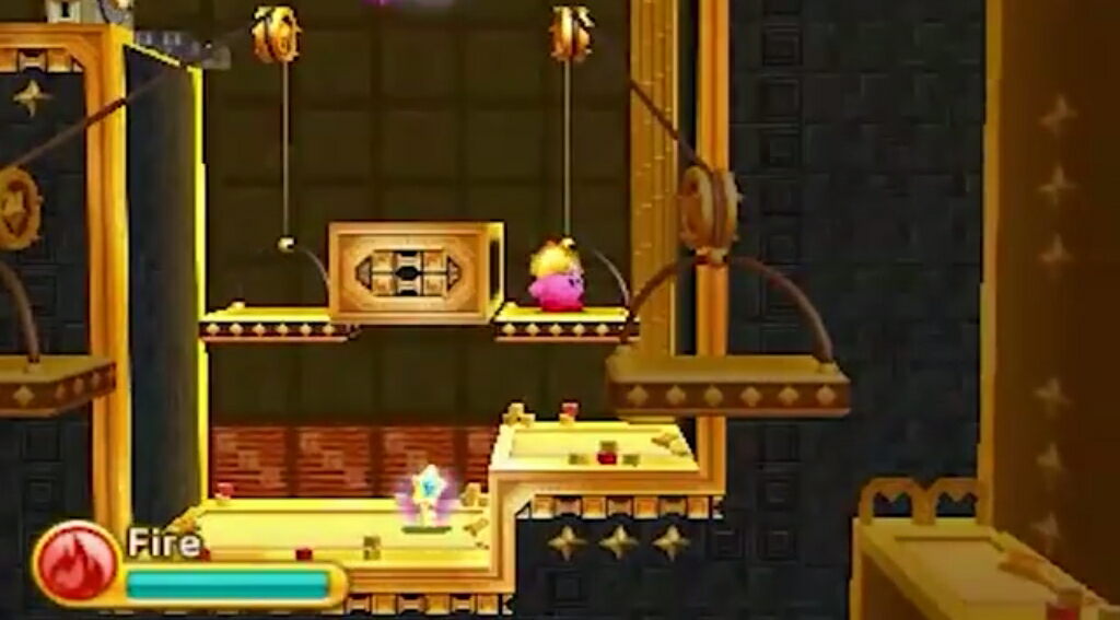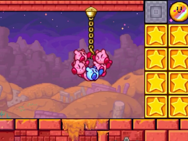 In Kirby Star Allies, ropes return, along with new flaming chains, which can only be cut by sharp weapons that have an element to extinguish fire.