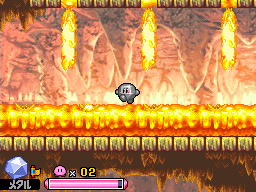 In Mag Mount and Volatile Volcano, Flame Bars are present (this version later reappears in Kirby's Return to Dream Land). A single Plasma Bar appears exclusively in Silent Seabed.