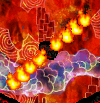 A lantern[3] is a source of light. Lanterns are only ever present in dark rooms, and serve to light these up temporarily. Most elements cannot be seen in dark rooms, and most enemies have a dull coloration until illuminated, and are difficult to spot, but outlines of lanterns can be seen against the background.