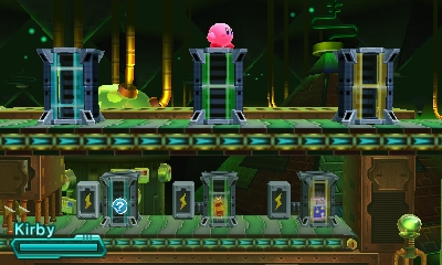 Kirby stands atop a Swap Chamber.