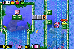 Currents are a recurring feature in water-heavy levels, such as in Olive Ocean in Kirby & The Amazing Mirror, and Aqua Star - Stage 4 of Kirby 64: The Crystal Shards. In most cases, currents are so fast that Kirby cannot swim against it, and would be swept along at great speed should he swim along its direction. These turn water-filled tunnels into one-way routes, providing a short-cut back into the main level from a secret location without having to return through a treacherous route, for example. Sometimes they are found in conjunction with Spikes, which Kirby can avoid by swimming against the current so there is more time to respond.