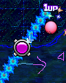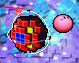 Orbiters are strange objects found only in Wonder Lilane's Spectacle Space. Orbiters merely float in space; if Kirby gets near one, he'll start orbiting around it. He can pull away from its orbit by riding a rainbow line away, dashing repeatedly, or using the Burning ability. Orbiters exist to let the player regenerate paint to create rainbow lines in the stage's massive second room.