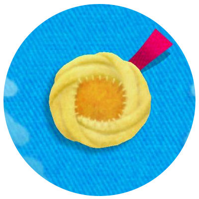 There are four different kinds of Buttons, each serving a different purpose. The first kind is red, appears to be made of plastic, and has four discontinuous pieces of string visible. This one is always attached with a string to some other object, which can be manipulated by pulling on the button with Kirby's yarn whip. Red buttons are always attached to objects that collapse when Kirby pulls the button, but a short time later return to their original form.