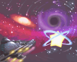 Kirby starts out on board the Halberd, which has now risen into the Gamble Galaxy, and he rides a Warp Star to a cluster of space debris. From there, Kirby progresses through a space station, floating over Popstar, and then arrives to some frozen asteroids. After trekking through the this area, Kirby takes another Warp Star through the asteroids, and onto another trail of space debris. After Kirby makes it through, he arrives at what seems to be a black hole to fight Dark Daroach, possessed by Dark Nebula. After Kirby defeats him, Dark Nebula reveals itself. Kirby grabs Daroach's Triple Star, and then chases Dark Nebula through some asteroids until he arrives at an odd shrine. Here, Dark Nebula's true form is revealed, and Kirby defeats him for good, restoring peace.