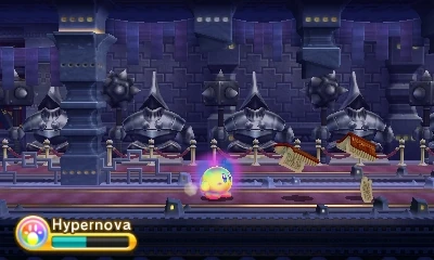 Before reaching the enemy, Kirby finds a Miracle Fruit and obtains the Hypernova ability. This allows him to effortlessly consume several Ghost Books at a time, their pages tearing out in the process. Defeating them this way prevents them from respawning should the hero leave the area and return.