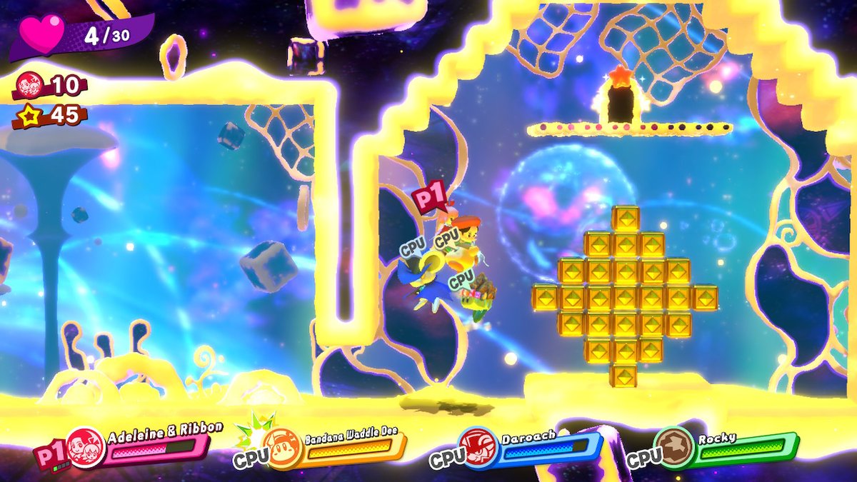 - In Dimension III of Kirby Star Allies’ Heroes in Another Dimension sub-game, Adeleine & Ribbon must carve shapes into block formations in order to obtain Friend Hearts. One of these shapes is nearly identical to that of HB-002. This may have been intended as reference to him.