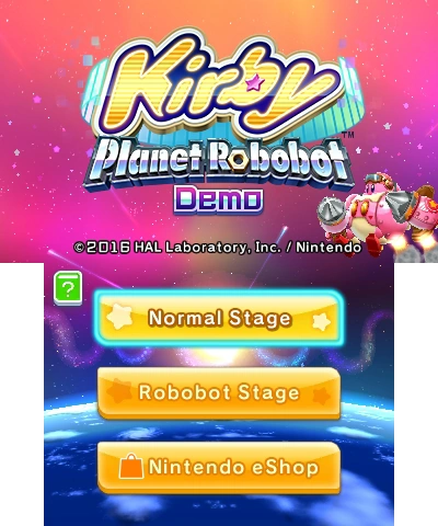 Kirby: Planet Robobot is a platformer Kirby game developed by HAL Laboratory and published by Nintendo for the Nintendo 3DS family of systems. It was released in Japan and South Korea on April 28th, 2016, in North America and Europe on June 10th, 2016, and in Australia on June 11, 2016.