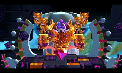 Kirby proceeds through Gigabyte Grounds before meeting Susie again. After singing part of the company's theme song, "The Noble Haltmann", she reveals Meta Knight was captured and turned into a cyborg called Mecha Knight. She deploys the newly-minted Mecha Knight before retreating again, leaving Kirby to battle his mechanized rival. The pink warrior triumphs, but Mecha Knight collapses into a deep ravine before he can be freed from the Haltmann Works Company's control.