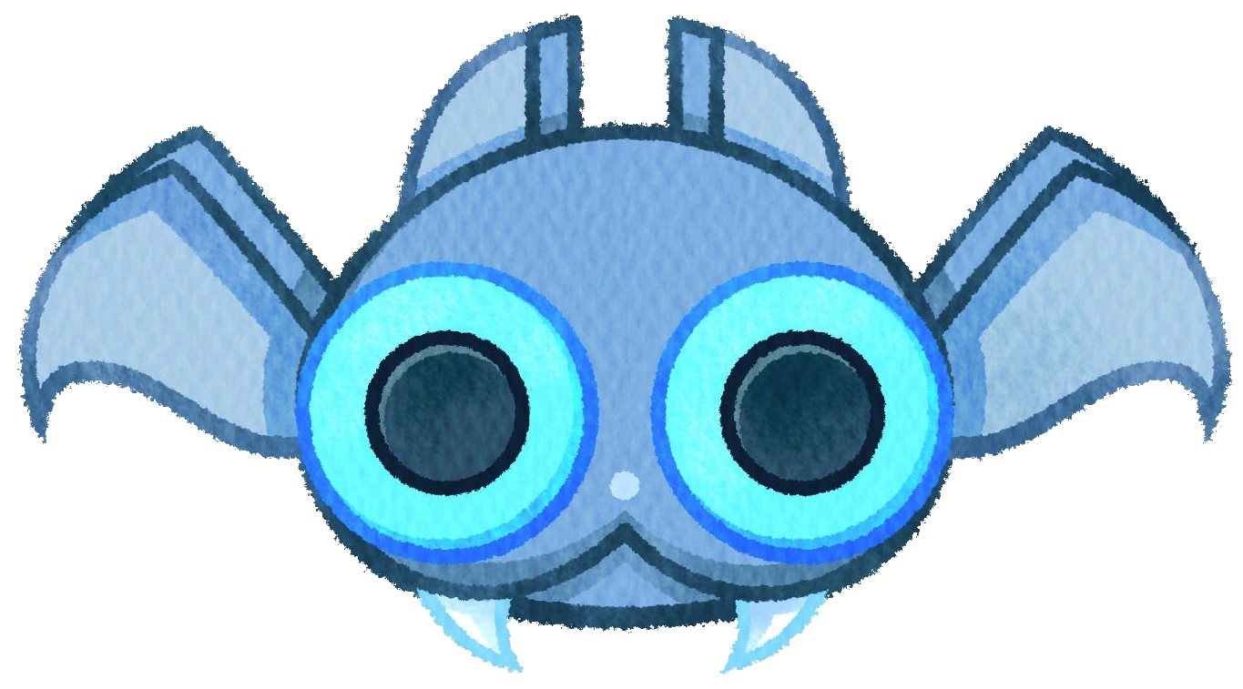Li'lbat is a black bat with large, round blue eyes. It has small black wings and two large fangs. Its facial structure resembles that of a cat. When enraged, the enemy's eyes invert, switching the colors of its pupils and scleras. It also reveals two tiny canine teeth in its bottom jaw.