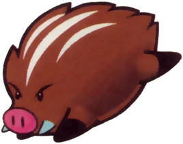 Nelly is a small boar who bears much resemblance to its larger counterpart, Nruff. It has spiky brown fur with small white stripes running across its back. It sports no visible ears and, unlike Nruff, always has its eyes open.