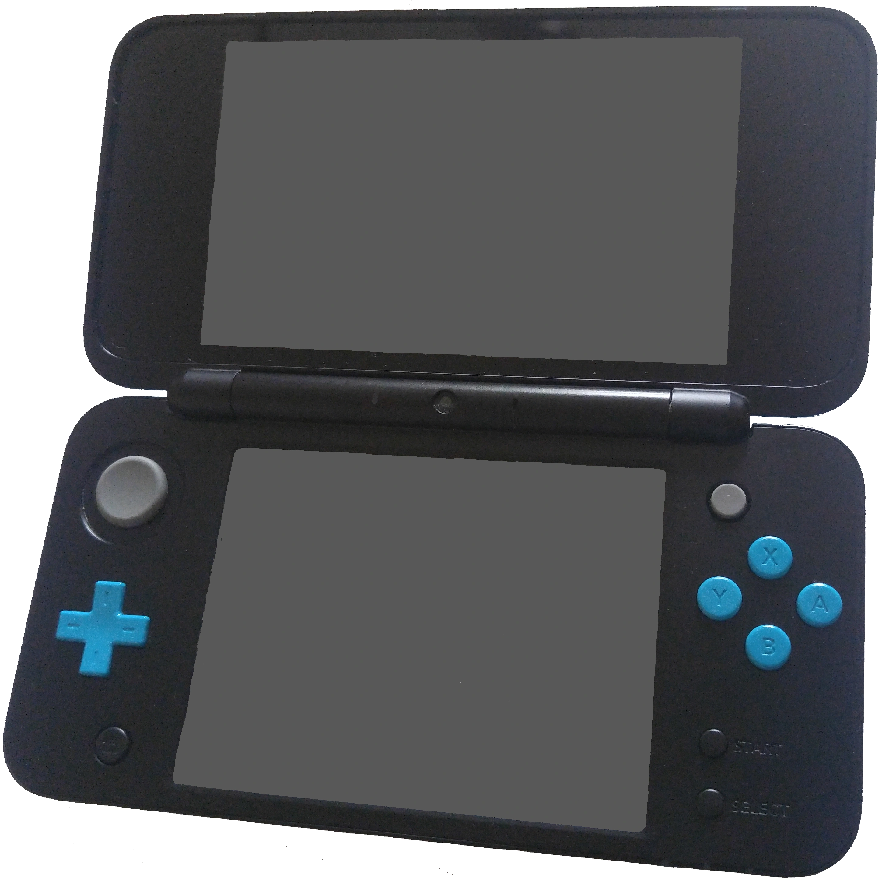 The Nintendo 3DS and the Nintendo 3DS XL has a Circle Pad with a Directional Pad under it on the left side, a Touch Screen at the center, and the A, B, X, and Y buttons on the right. On the 3D models, the 3D slider to toggle the 3D effect can be seen on the right of the upper screen, the effect coming out of the inner camera at the top center. On the backside are the L and R buttons. The Home, Start, and Select buttons are on the bottom of the touchscreen.