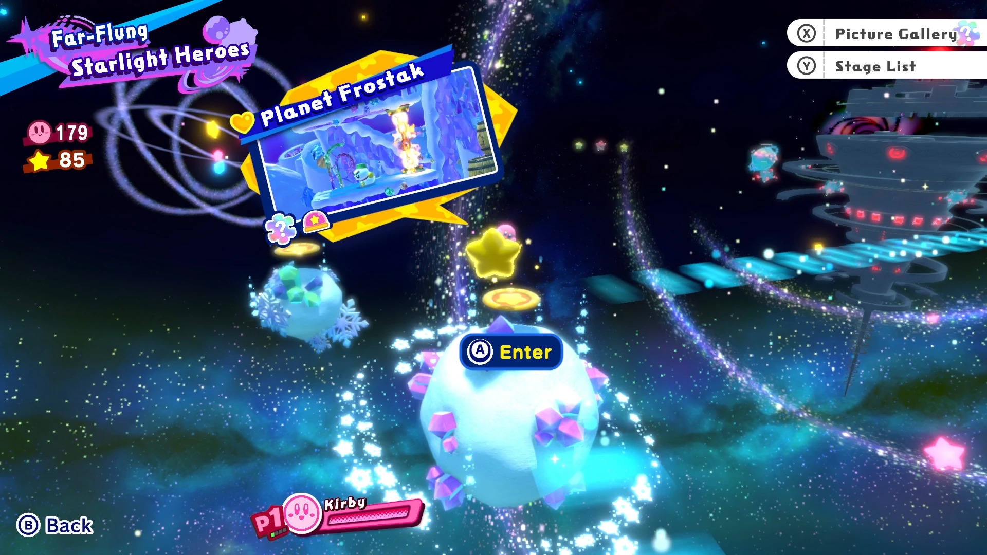 Planet Frostak is a planet that appears in Kirby Star Allies. It is the fourth main planet in the fourth level, Far-Flung - Starlight Heroes. Its moon is Blizzno Moon, where a rematch with Francisca is fought.