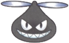 Propeller is a small flying creature that is shaped like a raindrop with a silver propeller on the top of its head, as its name implies. It normally appears with a simplistic smiling expression, which changes to a sinister expression when Kirby approaches, depending on the circumstances. Throughout the series, it has been portrayed with multiple different colors, such as blue (the most common color), gray, red, yellow, brown, and green (only seen in its artwork in Kirby's Dream Land 2).