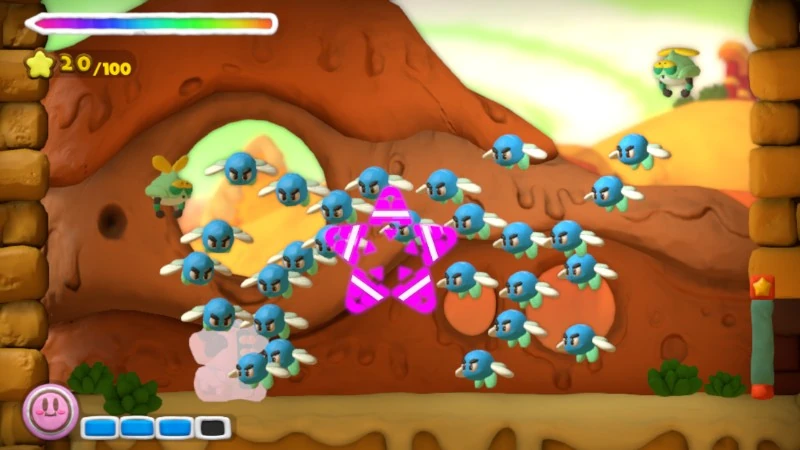 Being a successor to Kirby: Canvas Curse, this game also features Room Guarders. Special Blue Bronto Burts appear and try to swarm Kirby in certain segments, most notably in Deploy the Kirby Tank!.
