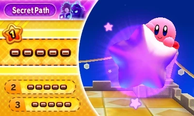 Unlike the previous levels, the Secret Path can only be accessed if Kirby earns a gold medal or better on each stage in the game. Unlike the other levels, the player cannot select each stage individually; even if Kirby has completed the Secret Path previously, if he is KO'd at any time, he restarts at the beginning of Stage 1.