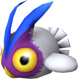 Snowl flies back and forth over snow-covered landscapes, occasionally dropping ice chunks—these will hurt Kirby if he collides with them. Snowls are most commonly found in White Wafers.