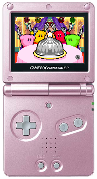 - The Japanese Kirby & The Amazing Mirror website features a Flash version of Speed Eaters. It's a pixel-perfect recreation of the Game Boy Advance version, displayed on an image of a pink Game Boy Advance SP. The player can play by clicking the screen (which displays an A Button under the cursor) or the A Button present on the Game Boy Advance SP—the button is animated to look like it is being pressed when clicked. All three difficulty levels are present.[1]