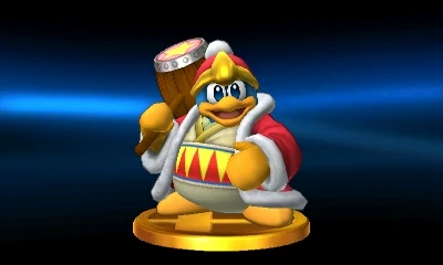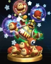 Dedede's the self-proclaimed king of Dream Land. While he says he's king, Dedede performs no administrative functions and the citizens of Dream Land continue to live as they always have. He's able to suck in air and fly like Kirby does, but only as a result of the vigorous training he undertook after being bested by Kirby. | |