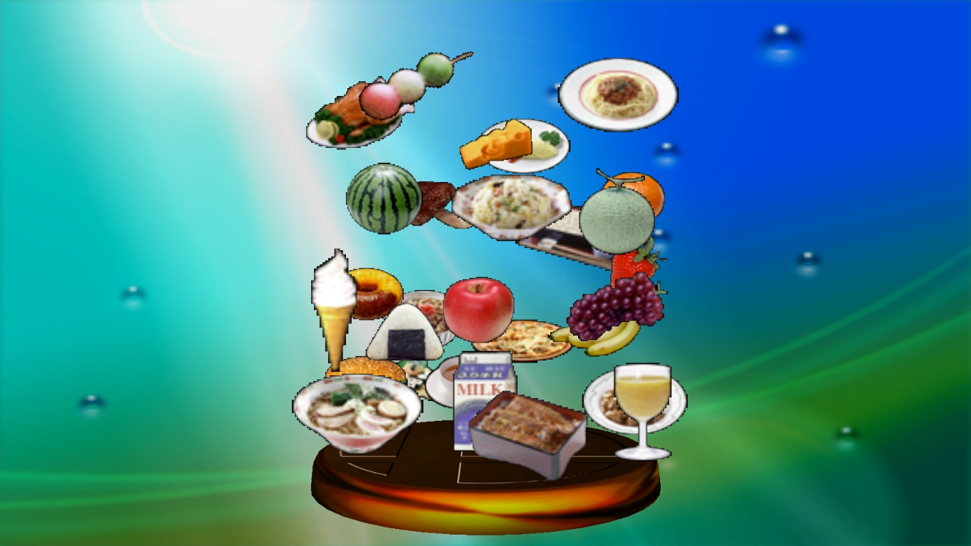 These food items will restore your health when you eat them. There are 28 different types of food, and the nutritional value and yumminess quotient differs slightly with each type. Party Balls tend to hold the largest amount of food items. You may be vulnerable when gorging yourself, but you do need to eat to survive. | |