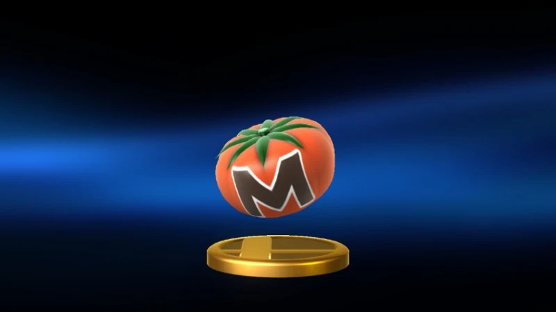 A juicy tomato that heals 50 percentage points of the damage you've accumulated. When one of these appears in combat, rest assured there will be a race to see who can reach it first. It's a race of desperation between players who want to heal their damage and those who want to stop them from doing so. In the Kirby series, Maxim Tomatoes healed all damage. |