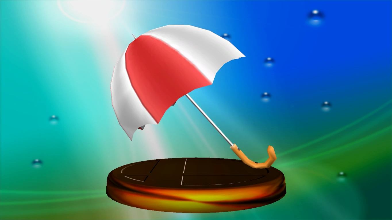The Parasol, which was originally used by Kirby, can be used as a weapon to bludgeon enemies. Even better is that fact that players can open it while airborne and lazily float back toward safe ground. It's incredibly useful in returning to the field of play after an opponent gets the better of you and sends you flying. |
