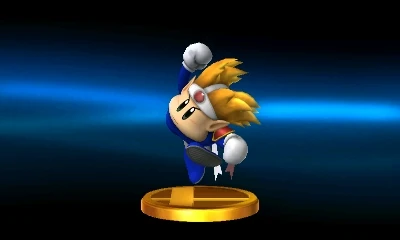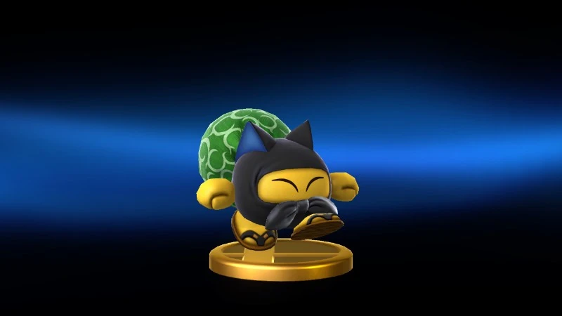 This speedy little guy is from the Kirby series. In those games, he steals the ability Kirby's in the middle of using and bolts. If you want it back, you have to chase him down and take it. In Smash Tour, Tacs appear randomly on the board, and you'll be rewarded with multiple stat boosts if you're quick enough to catch one! | |
