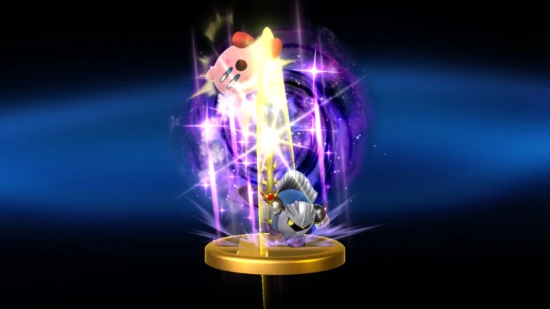 Wii Super Smash Bros. Brawl | Meta Knight's Final Smash. He flips his cape, and the darkness within envelops his foes and plunges the world into shadow. He then unleashes a series of sword strikes that do terrible damage and launch his foes. In the darkness, Meta Knight can also reach and attack distant enemies. One can imagine Meta Knight zipping back and forth at high speed to accomplish this. |