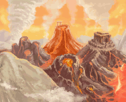 At first, the area seems like a peaceful mountain. But as Kirby ventures further, it turns out to be an active chain of volcanoes. As expected, the area is primarily made up of crumbling platforms, lava, and fiery enemies. There are a few buildings located around the volcano as well as some volcanic caves. This area's boss is Bohboh.