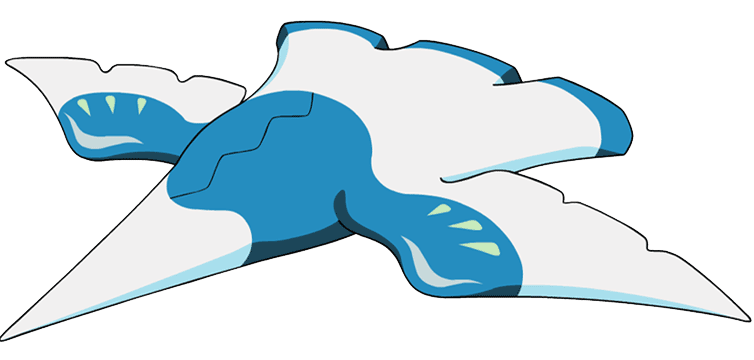 The Winged Star is a white machine with a blue midsection and trimmings. As its name implies, it appears to have an aerodynamic design with feathered wing-like pieces on the side and back and a sharp nose.