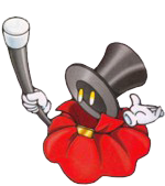 In Kirby & The Amazing Mirror, Wiz is a boss that appears at the end of the frosty Peppermint Palace. When the Kirby(s) enter the arena, Wiz floats down to the middle of the screen in his hat. He fights by rushing to different points of the screen, and by going inside his hat, summons a multitude of objects and enemies to attack. Whenever he is inside his hat he is invincible, so the Kirbys will have to attack him before he hides inside it.