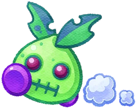 Zombon has a similar appearance to Beanbon. It is sickly green color with faint dark green spots. It has red eyes and a leaf that has been chewed and tattered. It also has purple feet and a stitched mouth.